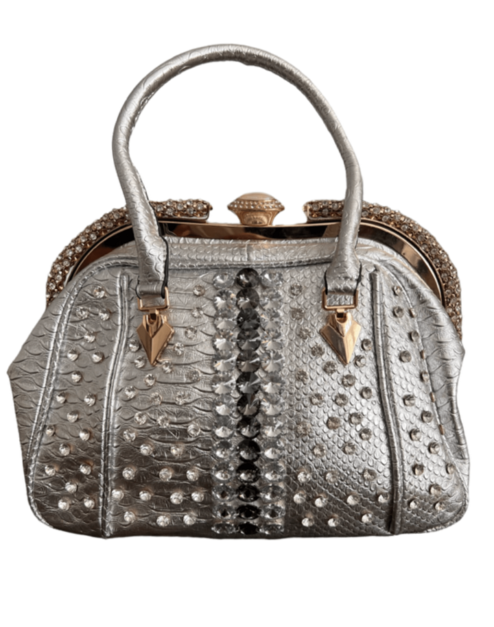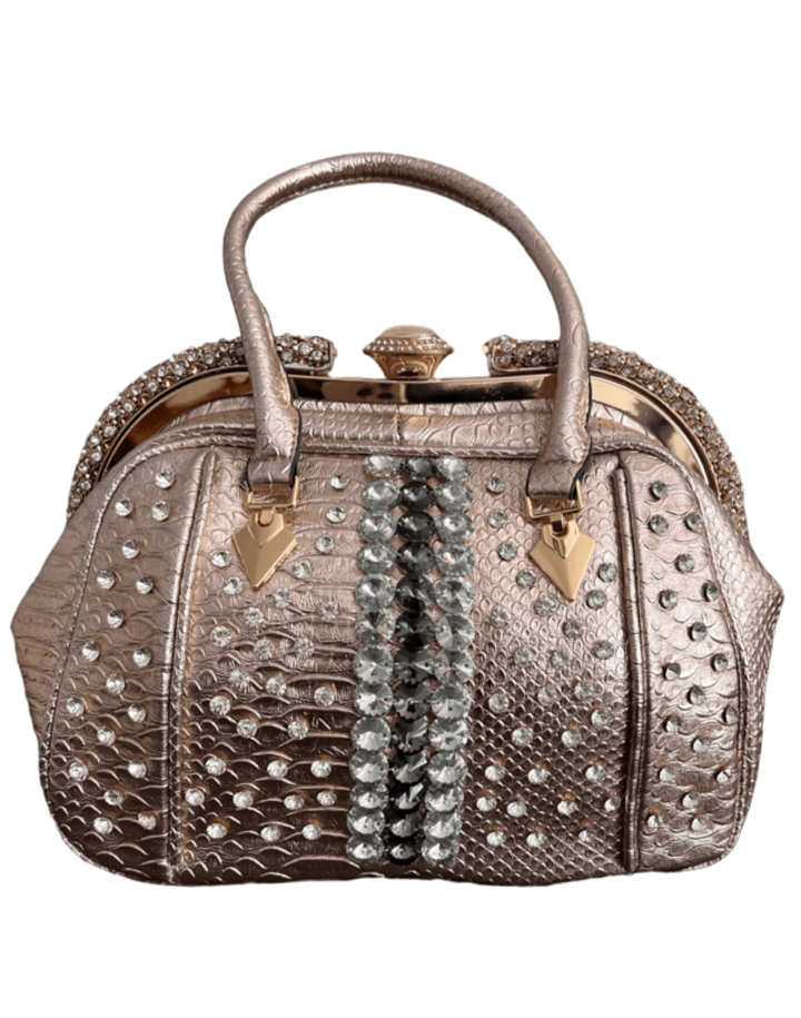 – Rhinestone, PU leather. Clasp closure. – Removable, adjustable crossbody strap.