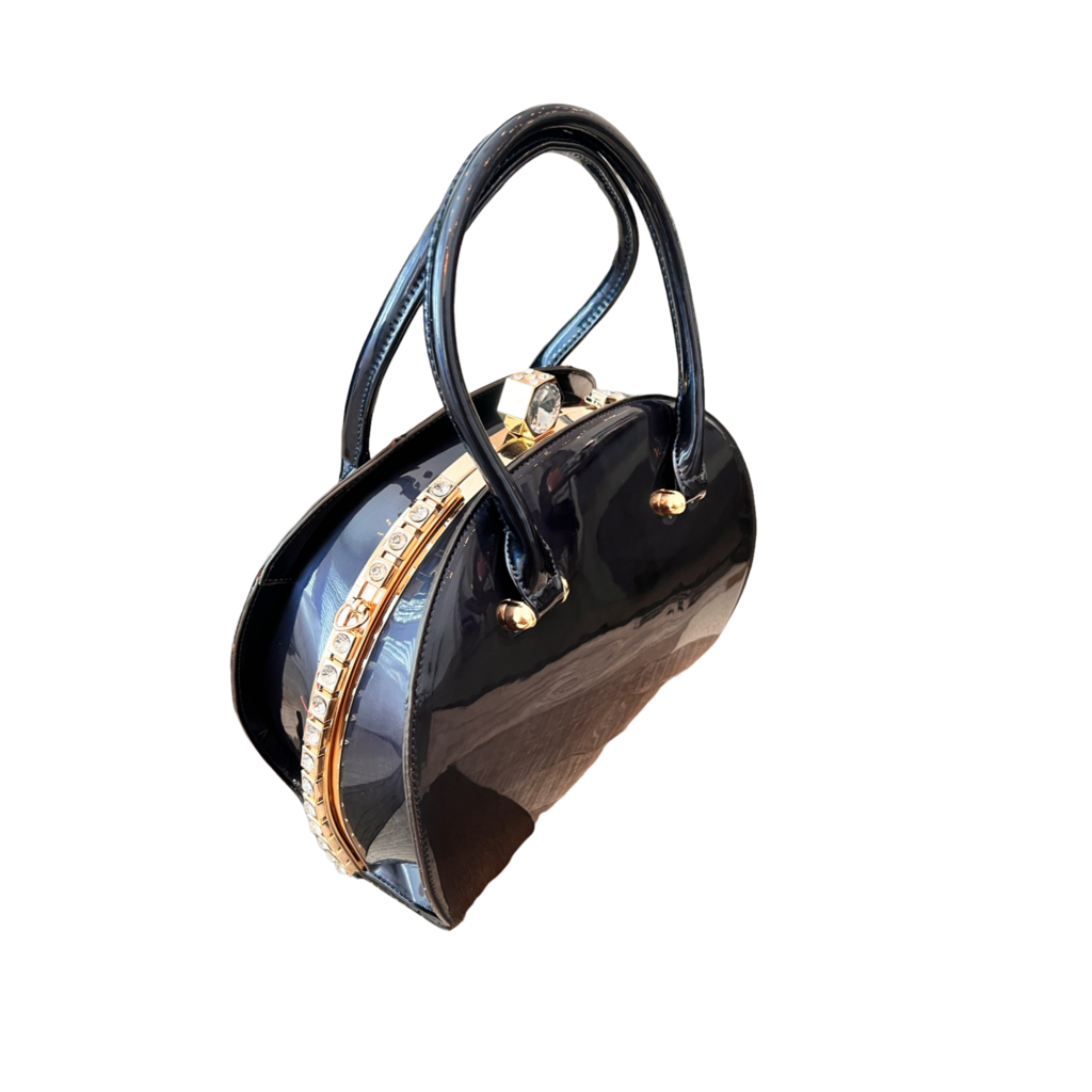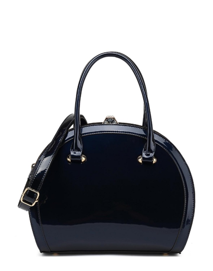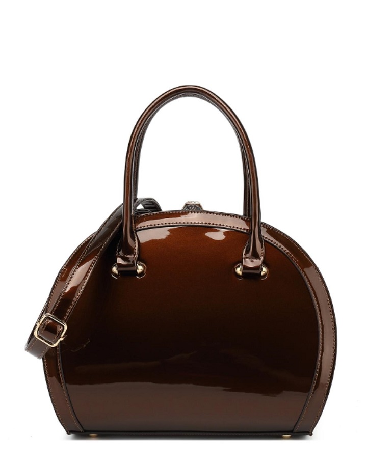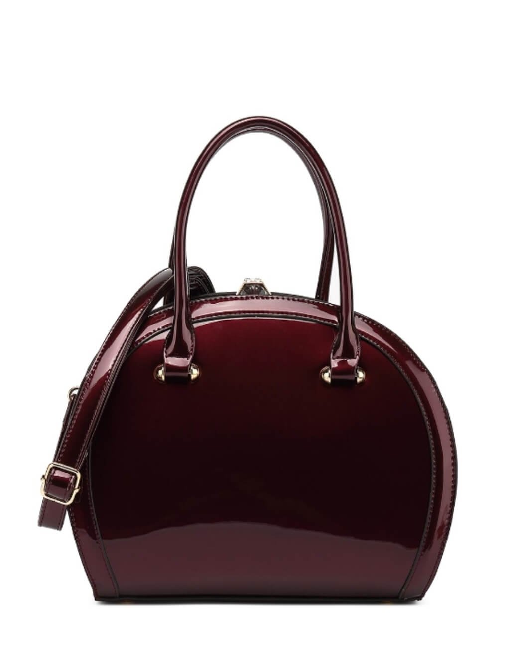 Design in a stylish silhouette. Crafted from shiny patent leather. Finishing with our customized gilded hardware. Smooth push-lock closure. Flat bottom with protective studs. Wear it to add chic punctuation to any look.